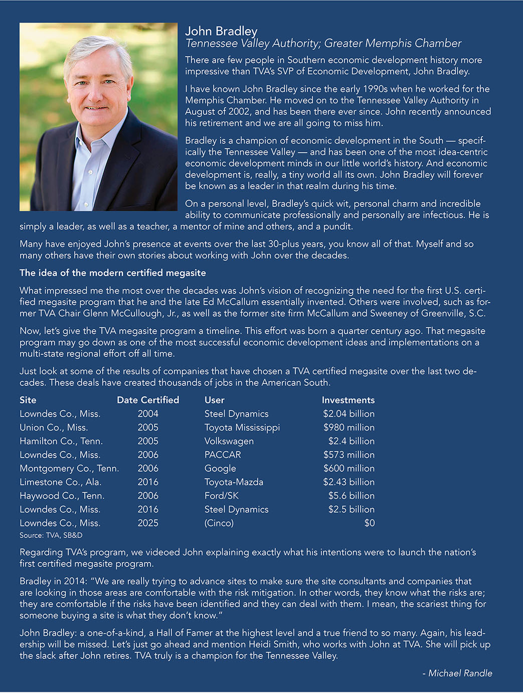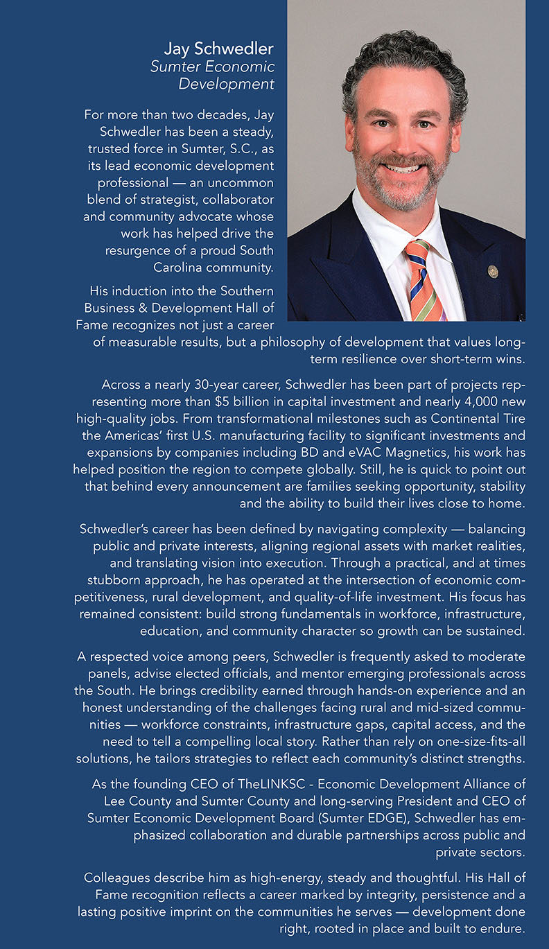 EDITOR’S NOTE: If you would like to nominate someone to be considered for the Southern Economic Development Hall of Fame, simply email their name and title to Michael Randle at michael@sb-d.com.